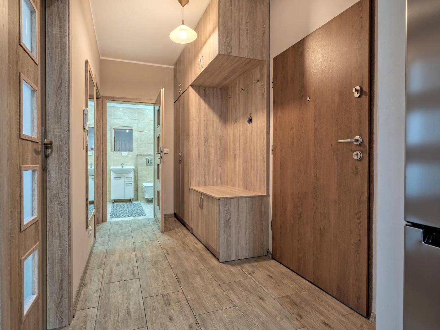 Apartament z 2 sypialniami. Featuring a private entrance, this apartment consists of 1 living room, 2 separate bedrooms and 1 bathroom with a shower and a hairdryer. Guests can make meals in the kitchen that is equipped with a stovetop, a refrigerator, kitchenware and an oven. Boasting a balcony with ancourtyard view, this apartment also provides a washing machine and a flat-screen TV with satellite channels. The unit offers 3 beds. Apartament - 6 osobowy. Powierzchnia pokoju ok.: 57 mkw.
