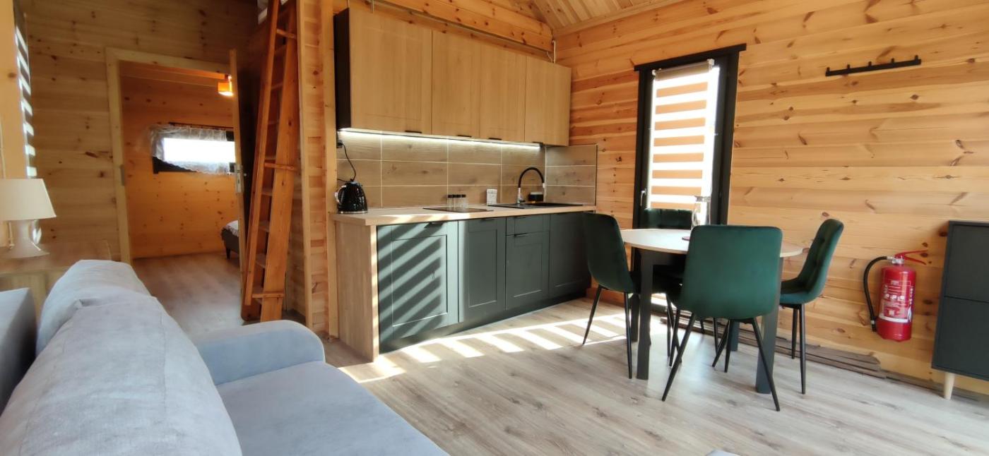 Dom z 2 sypialniami. This holiday home consists of 1 living room, 2 separate bedrooms and 1 bathroom with a shower and a hairdryer. Guests will find a stovetop, a refrigerator, kitchenware and an electric kettle in the kitchenette. The holiday home also offers a barbecue. The holiday home features a seating area, a dining area, a wardrobe as well as a terrace with garden views. The unit offers 4 beds. Dom wakacyjny - 5 osobowy. Powierzchnia pokoju ok.: 35 mkw.