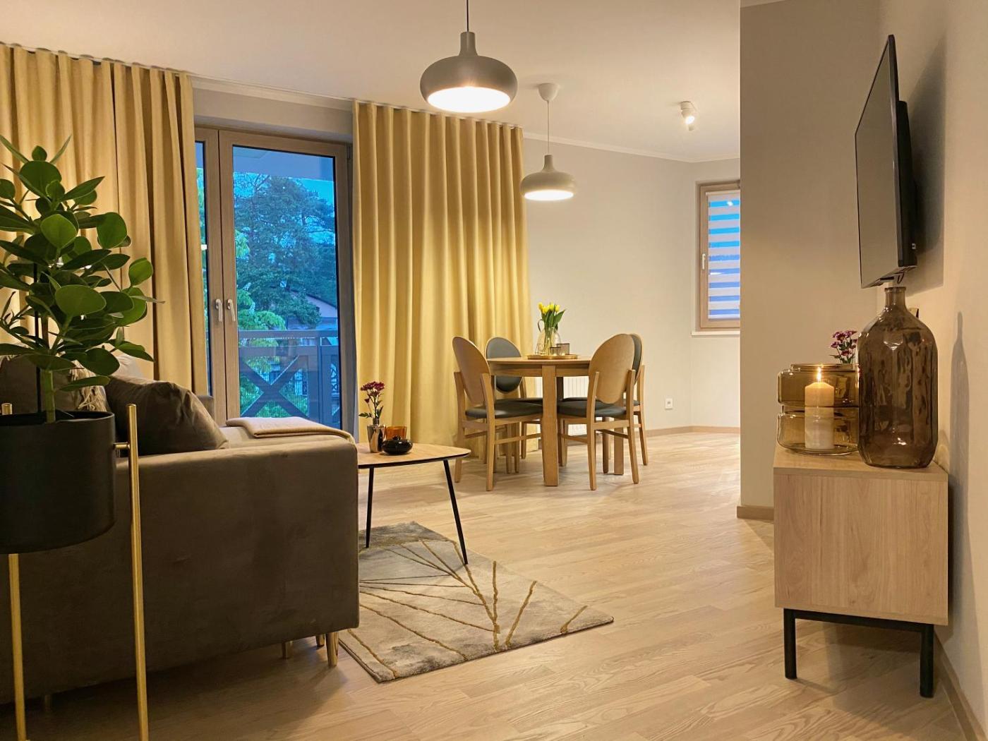 Apartament z 1 sypialnią. Boasting a private entrance, this apartment includes 1 living room, 1 separate bedroom and 1 bathroom with a walk-in shower and a hairdryer. In the well-equipped kitchenette, guests will find a stovetop, a refrigerator, a dishwasher and kitchenware. Featuring a terrace with garden views, this apartment also offers a washing machine and a flat-screen TV with streaming services. The unit has 2 beds. Apartament - 4 osobowy. Powierzchnia pokoju ok.: 44 mkw.