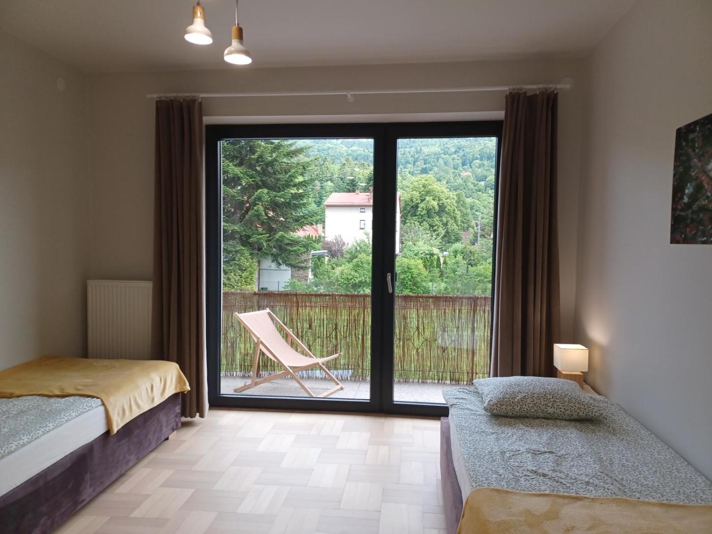 Apartament z 2 sypialniami. This apartment is comprised of 2 bedrooms, a kitchen and 1 bathroom with a shower and a hairdryer. The well-fitted kitchen features a stovetop, a refrigerator, a dishwasher and kitchenware. Featuring a balcony with garden views, this apartment also offers a washing machine and a flat-screen TV. The unit offers 4 beds. Apartament - 5 osobowy. Powierzchnia pokoju ok.: 56 mkw.