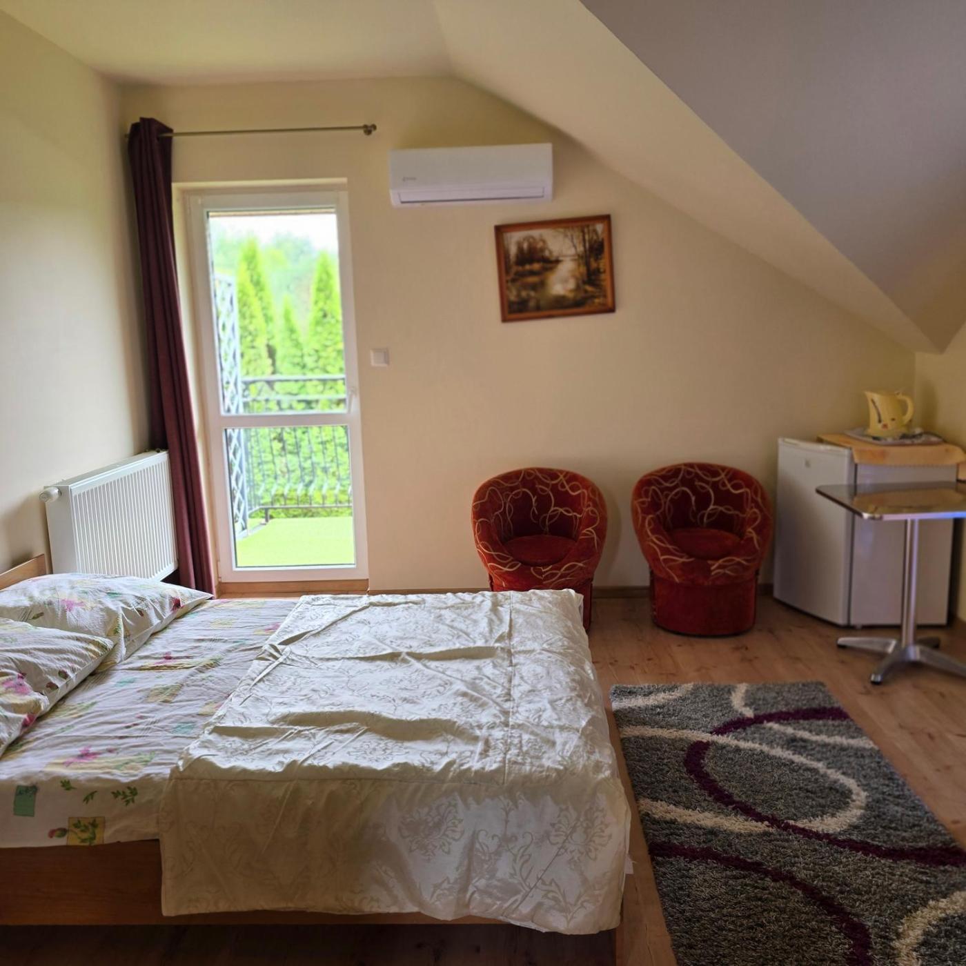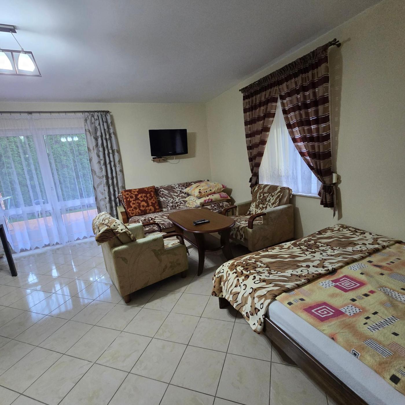 Duży pokój dwuosobowy. The well-equipped kitchenette has a refrigerator, kitchenware and an electric kettle. The double room features air conditioning, a dining area, a terrace with garden views as well as a private bathroom boasting a shower. The unit has 1 bed. Pokój Dwuosobowy - 2 osobowy. Powierzchnia pokoju ok.: 12 mkw.