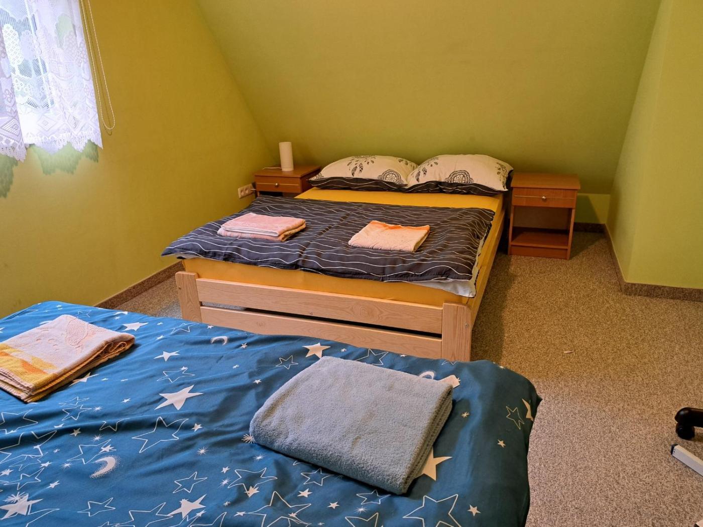 Dom z 2 sypialniami. Guests will have a special experience as this holiday home features a fireplace. Featuring 2 bedrooms and 2 bathrooms with a shower, this holiday home offers a well-fitted kitchen and a terrace. Guests will find a stovetop, a refrigerator, kitchenware and an oven in the well-equipped kitchen. The holiday home also has a barbecue. Boasting a balcony with garden views, this holiday home also offers a washing machine and a flat-screen TV. The unit has 4 beds. Dom wakacyjny - 7 osobowy.