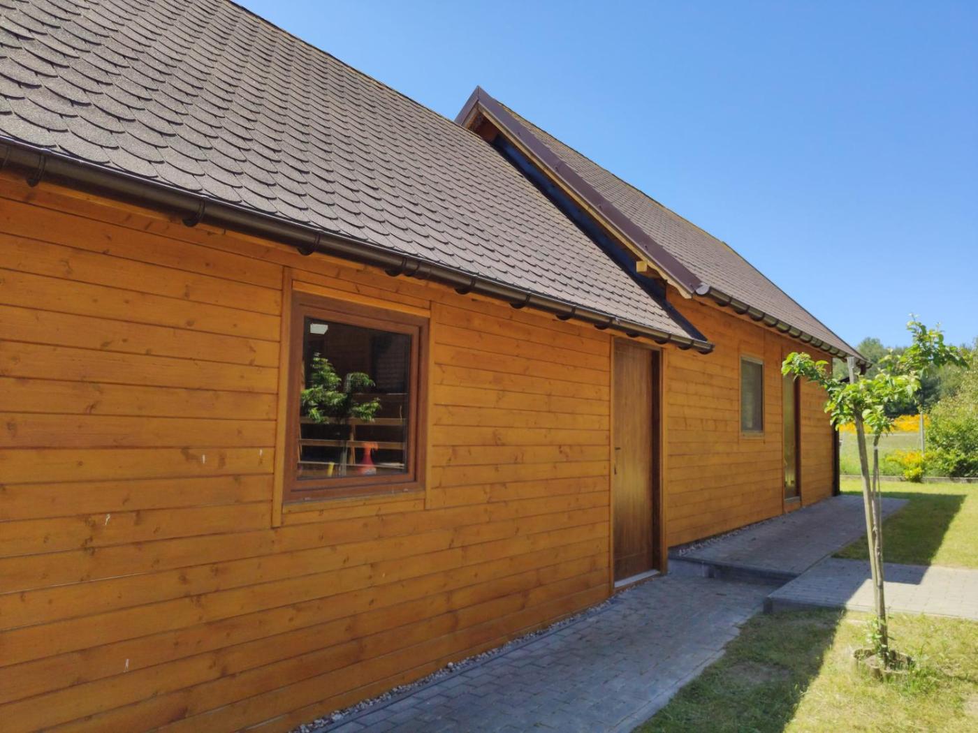 Domek z 2 sypialniami. Boasting a private entrance, this chalet also comes with 1 living room, 2 separate bedrooms and 1 bathroom with a shower. Guests will find a stovetop, a refrigerator, kitchenware and an electric kettle in the well-fitted kitchenette. The chalet also includes a barbecue. Featuring a terrace with garden views, this chalet also features a seating area and a TV. The unit has 8 beds. Powierzchnia pokoju ok.: 49 mkw.